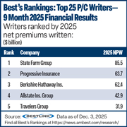 Do you have news to share? Send it to our news team. We also welcome comments and feedback. For advertising opportunities, please visit our website or call (908) 882-1706. Access My Account to register and view your subscriptions or update your profile. You may opt-in to receive other AM Best publications via email at any time. Your privacy is important to us. View our Privacy Notice. All content provided by AM Best is subject to our Terms of Use statement. Copyright © 2025 AM Best Company, Inc. and/or its affiliates. All Rights Reserved. Duplication, copying, and electronic dissemination of this email in its original form, including this copyright message, is permitted for noncommercial use. No portion of the content may be reproduced, distributed, or stored in a database or retrieval system, or transmitted, or uploaded into any external applications, algorithms, bots or websites, including those using artificial intelligence or machine learning technologies such as large language models (LLM), generative artificial intelligence (Gen-AI) or retrieval augmented generation (RAG) in any form or by any means without the prior written permission of AM Best. AM Best does not warrant the accuracy, completeness, or timeliness of the AM Best content. While the content was obtained from sources believed to be reliable, its accuracy is not guaranteed. You specifically acknowledge that neither AM Best nor the content gives any investment, financial, tax, insurance, or legal advice. You are solely responsible for seeking competent professional advice before making any investment, financial, tax or insurance decision. For additional details, refer to our Terms of Use available at the AM Best website: https://web.ambest.com/about/terms-of-use. AM Best and the AM Best logo are the registered trademarks of AM Best Company, Inc. AM Best, 1 Ambest Rd., Oldwick, New Jersey, 08858, U.S.A.